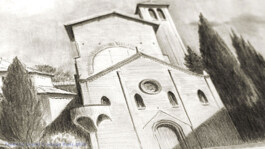 dessin sur le motif de la Basilique Santo Stefano à Bologne - Italie