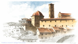 dessin sur le motif du baptistère et de la cathédrale Santa Maria Assunta - Italie